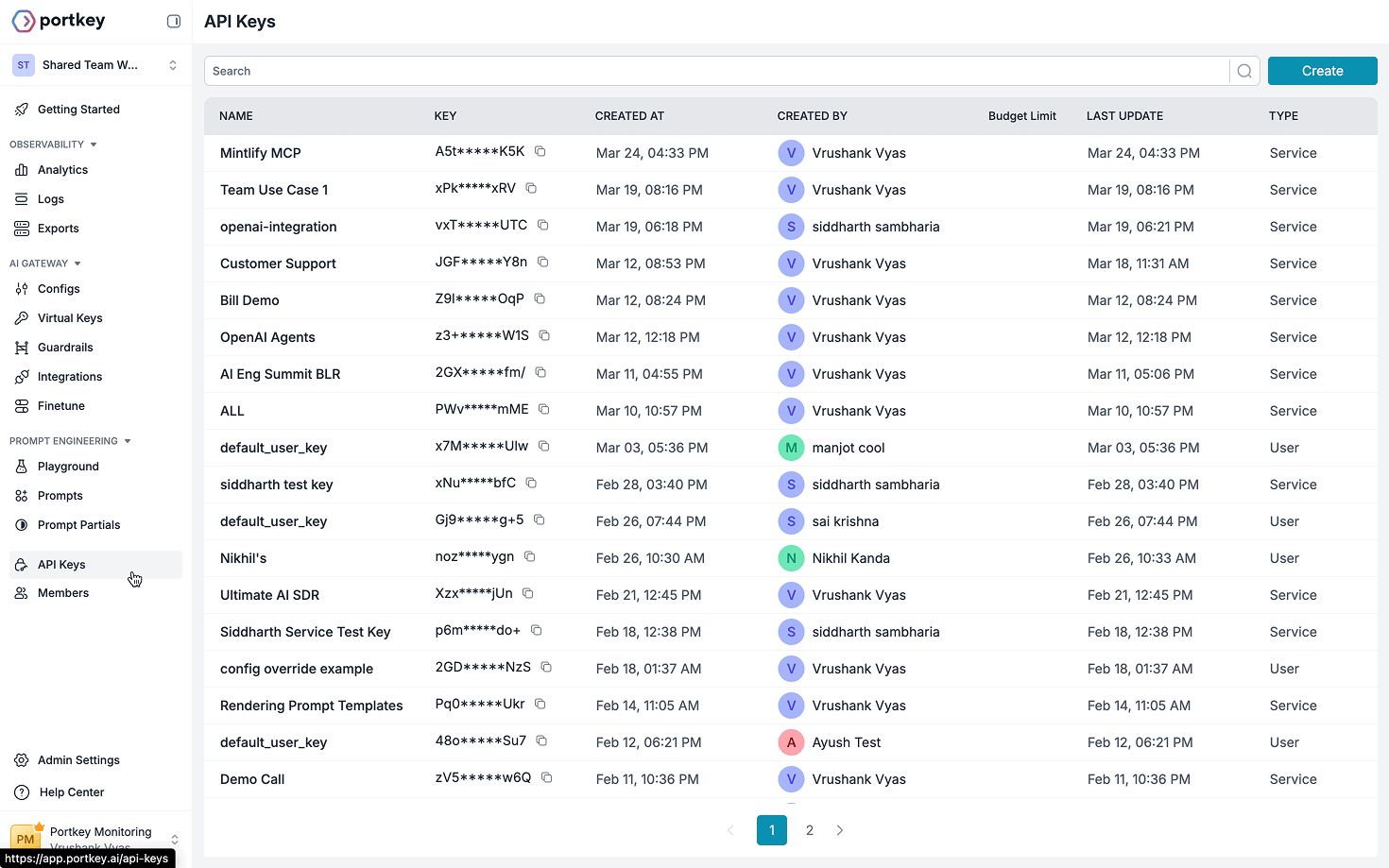Beyond resources and analytics, you’ll need to manage who has access to your Portkey environment:Users & Invites